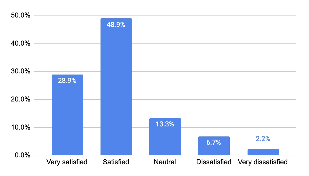 - Only a small fraction (6%) of respondents have less than three years of experience in their careers.