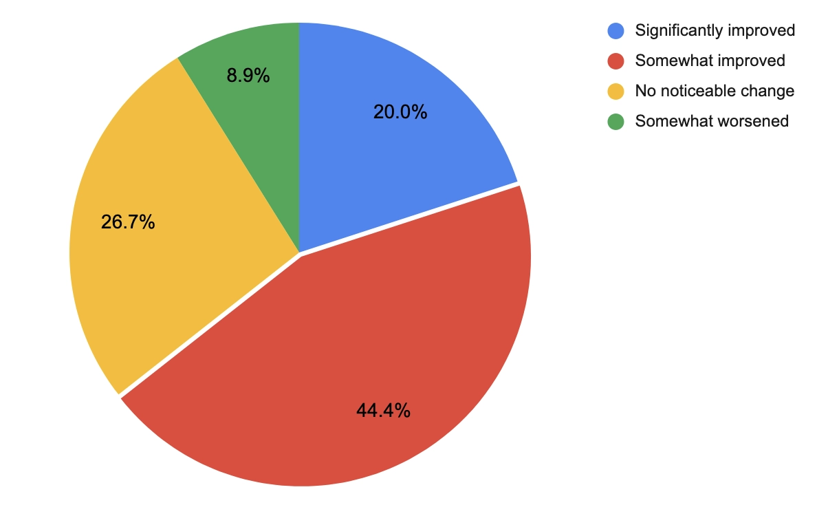 Another major question is the time and effort required to verify the AI-generated code. Does it take a long time to verify AI code? Is it easier to verify the human-written code than the AI-generated code? We asked respondents if implementing AI had changed the time spent on code verification.